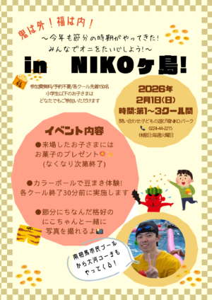 節分イベントが開催されます! 【節分イベントが開催されます!】 2月1日日曜日に、節分にちなんでNIKOパークでイベントが開催されます! 南相馬市民プールから郡司コーチもきてくれますので ぜひみなさんお越しください☺ 2026年01月12日 イベント 一覧に戻る